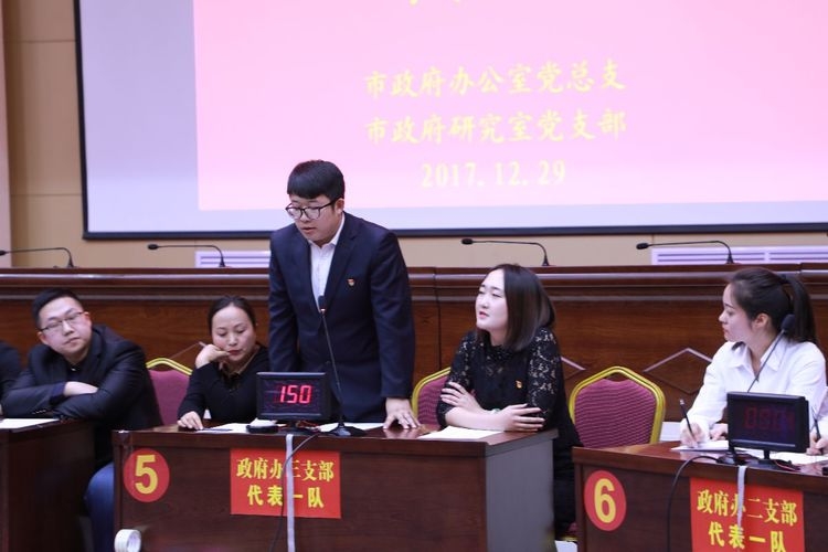 市政府办公室党总支部下属三个机关党支部组建的6支参赛队伍和市政府研究室党支部组建的1支参赛队伍参加了本次知识竞赛。7支参赛队伍的队员个个精神抖擞,斗志满满,展现了市政府办公室及市政府研究室干部职工的良好精神风貌。